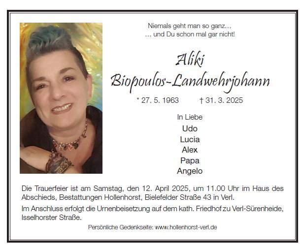 Wenn man die vielen schönen, berührenden Kommentare hier liest, weiß man, wie beliebt Aliki immer war. Und es auch immer bleiben wird! Beliebt, geliebt und unvergessen. Sie war ein ganz besonderer Mensch, und natürlich hinterlässt sie eine große Lücke.
