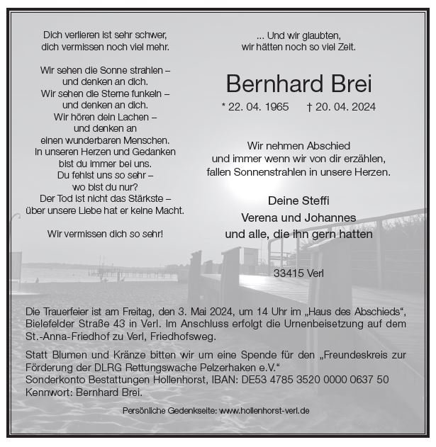 Die Nachricht vom Ableben von Bernhard hat mich tief berührt.