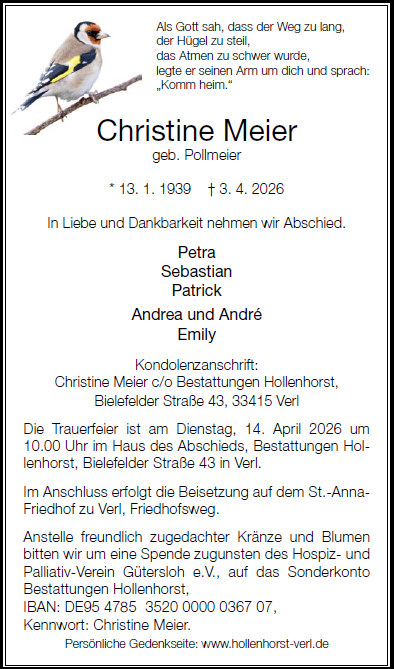 geboren am 13. Januar 1939 in Liemke, Verl gestorben am 3. April 2026 in Gütersloh