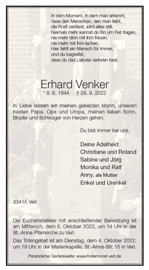 geboren am 8. August 1944 in Neuenkirchen gestorben am 29. September 2022 in Warendorf