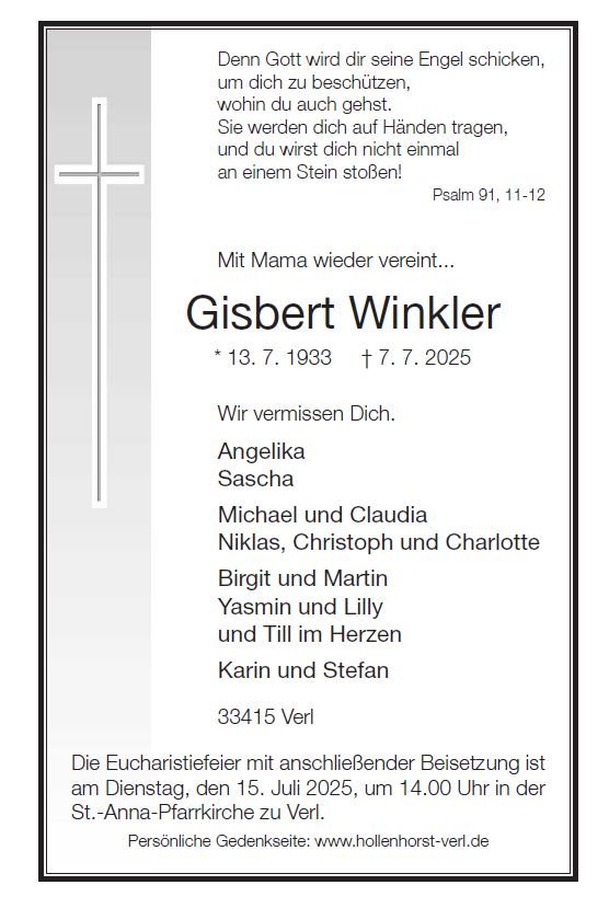 geboren am 13. Juli 1933 in Klein-Carlowitz gestorben am 7. Juli 2025 in Gütersloh