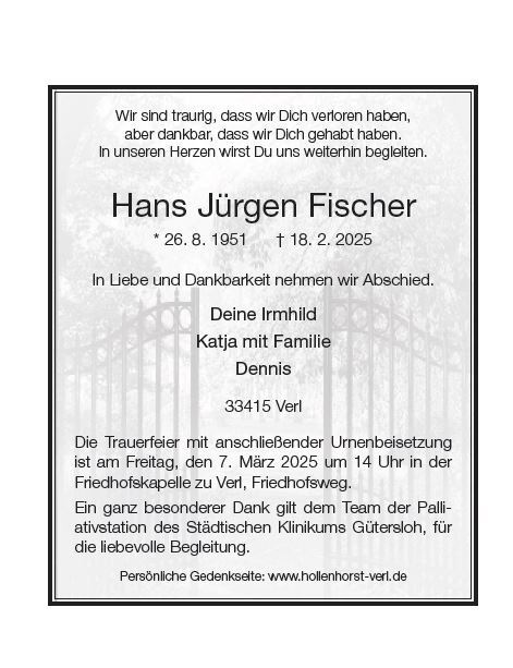 geboren am 26. August 1951 in Bückwitz gestorben am 18. Februar 2025 in Gütersloh