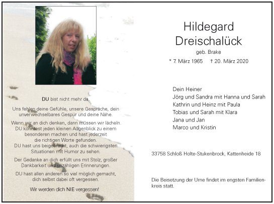 geboren am 7. März 1965 gestorben am 20. März 2020