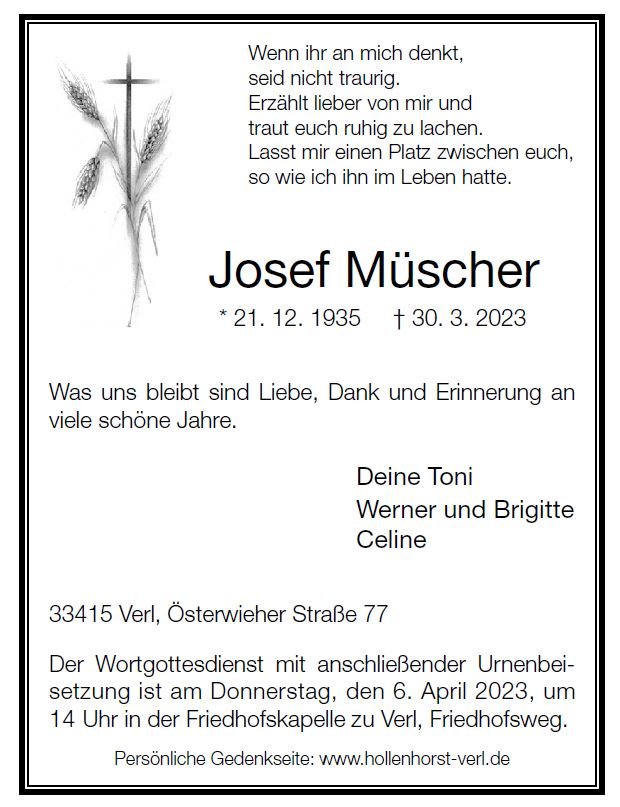 geboren am 21. Dezember 1935 in Gütersloh gestorben am 30. März 2023 in Verl