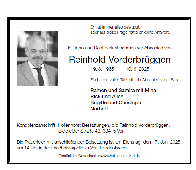 geboren am 9. August 1965 in Verl gestorben am 10. Juni 2025 in Verl