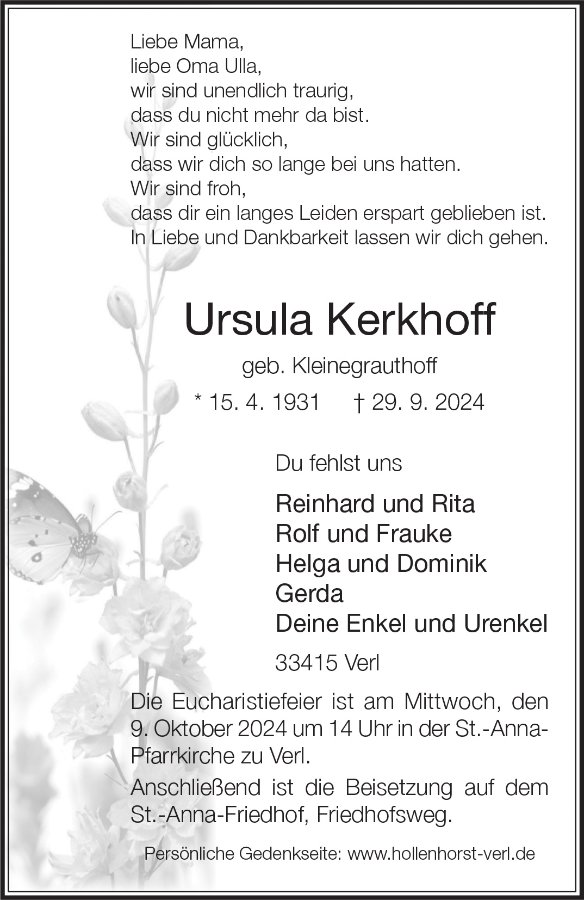 Ursula Kerkhoff geb. Kleinegrauthoff