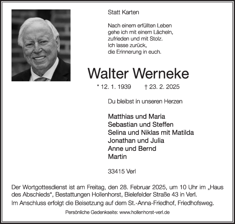 geboren am 12. Januar 1939 in Bornholte gestorben am 23. Februar 2025 in Verl