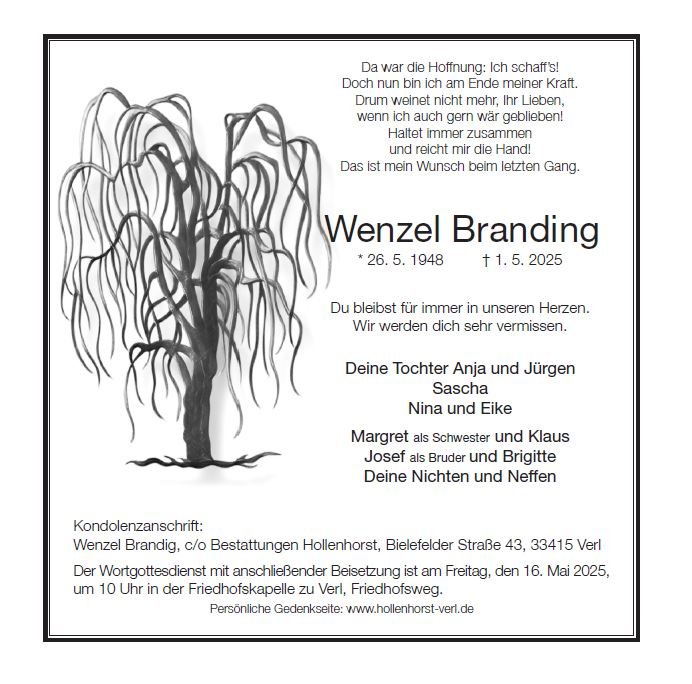 Ganz besonders unsere letzte Begegnung am Abend vor deinem Tod wird Monika und mir in Erinnerung bleiben, als wir uns noch einmal eine Weile mit dir unterhalten durften.